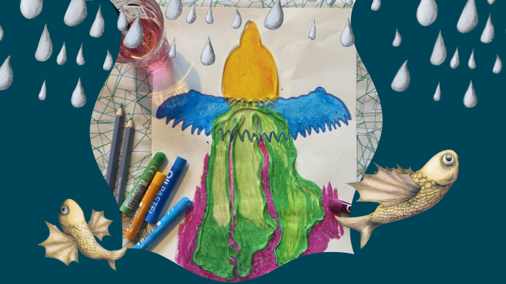 Skab en hel ny gople-art ved at sammensætte forskellige gople-kropsdele og farvelæg dem med oliekridt og akvarelfarver!