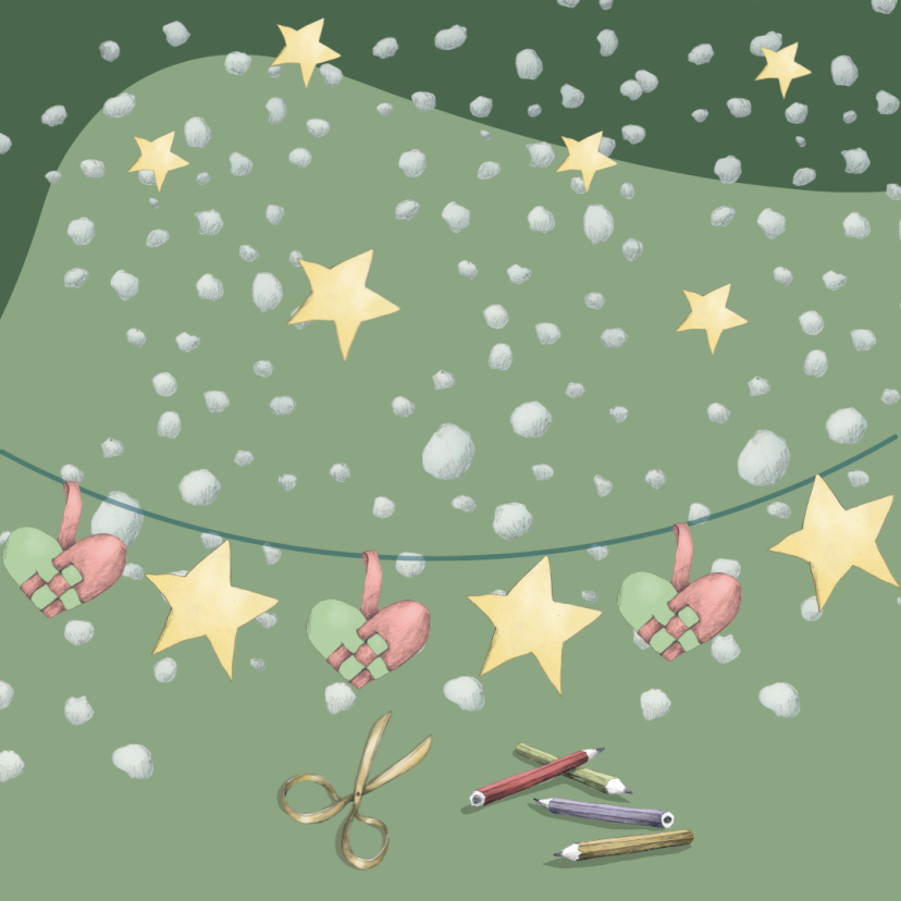 Kom til en omgang klassisk klippe-klister med guirlande, julestjerner, musetrapper mm.