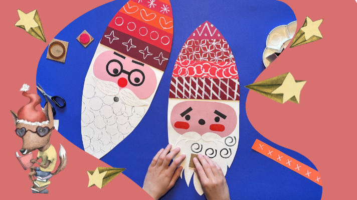 Vi trykker med mælkelåg, toiletruller og andre skøre ting, så nissen får den fineste hue. Når kunstværkstedet slutter, får I selvfølgelig nissen med hjem.