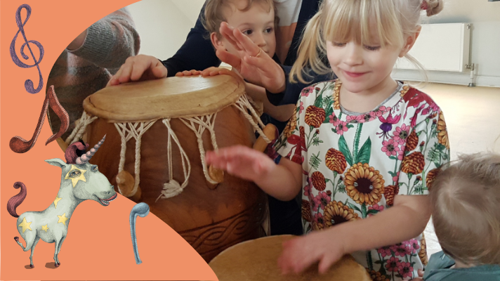 Har du et ældre barn? Så afholder vi også Lørdagsrytmik for børn mellem 3-6 år med Jane Okine. Link til Lørdagsrytmik for 3-6 årige.