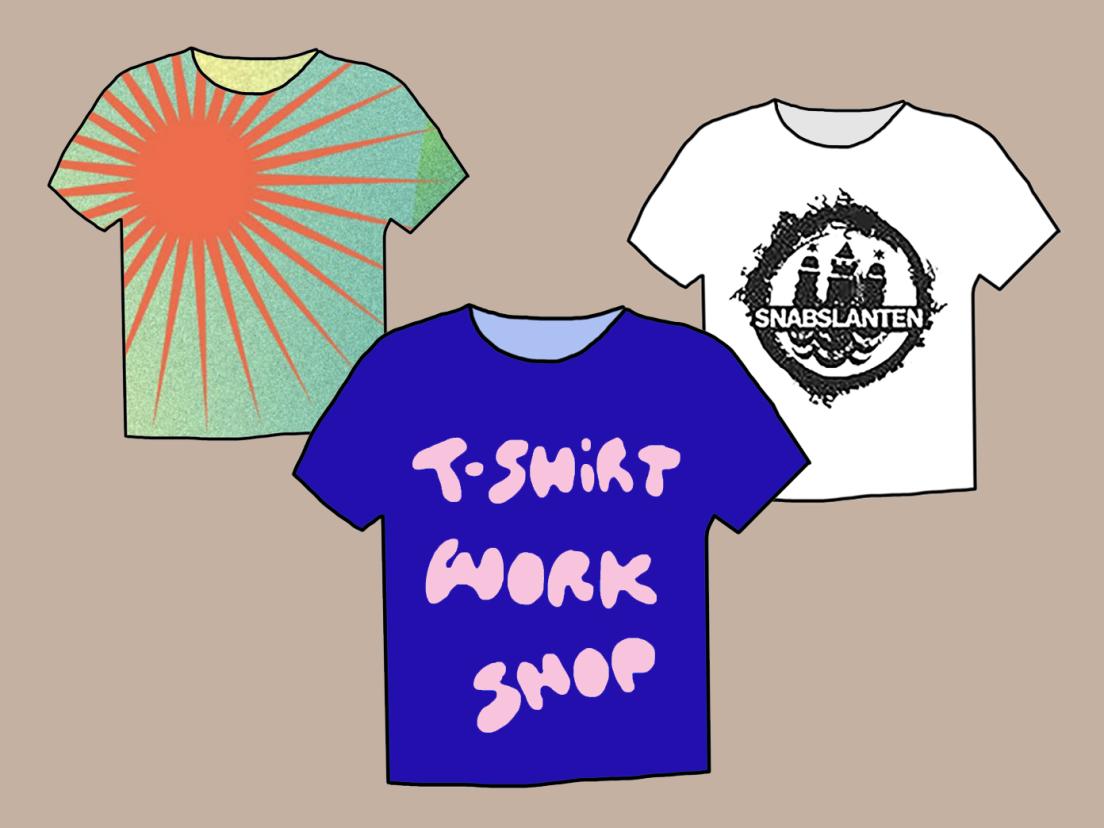 På workshoppen laver vi flotte t-shirts med motiver inspireret af naturen. Alt er gratis, men for at passe på klimaet og sikre at t-shirten passer, skal du selv medbringe en velegnet t-shirt uden tryk men meget gerne brugt.