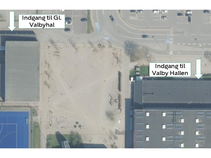 Leder du efter Gl. Valbyhal? Nedenunder ser du indgangene til Valby Hallen og Gl. Valbyhal.