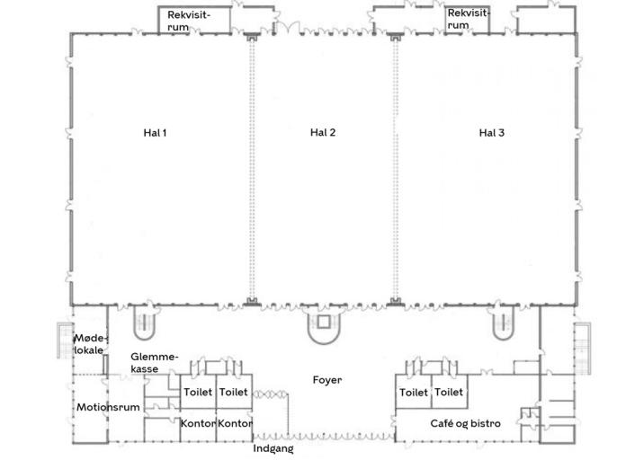 I oversigten nedenunder ser du en plantegning for Valby Hallen i stueplan.
