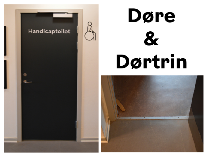 Dørene til handikaptoiletterne er 80 cm. bredde og uden dørpumpe.